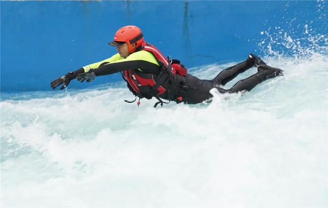 在个人技术方面,把翻舟自救、脱困避险、拖带救人等6个救人与自救科目作为重点,利用模拟急流训练设施开展实战化训练,逐人考核过关。