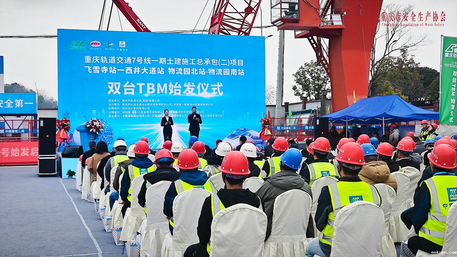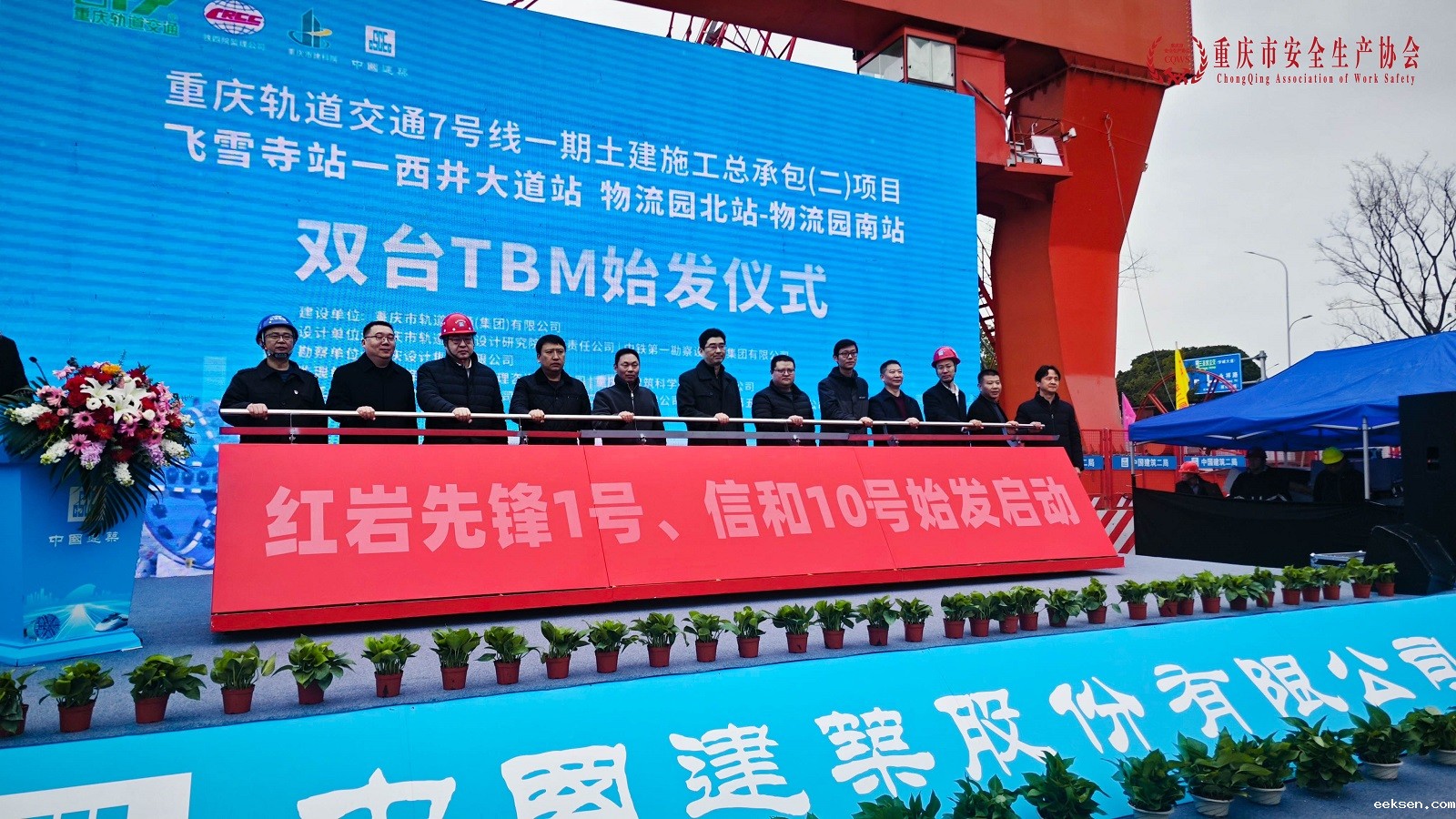 2月19日上午,悠米互娱官网会长陈光文在李鑫秘书长的陪同下应邀出席在中建二局重庆轨道7号线项目部举办的重庆轨道交通7号线一期土建施工总承包(二)项目双台TBM始发仪式,并宣布“重庆轨道交通7号线一期土建施工总承包(二)项目红岩先锋1号、信和10号双台TBM正式启动成功”。