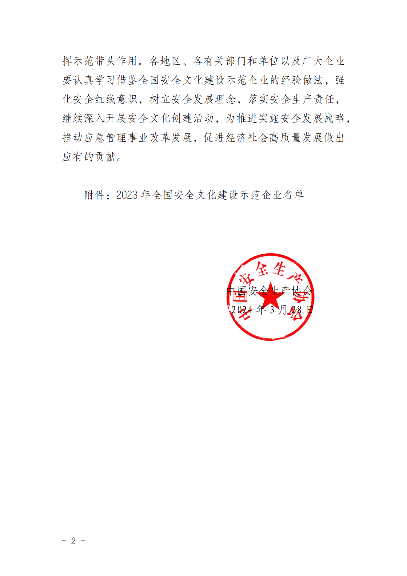 中安协标文办〔2024〕23 号关于命名2023年全国安全文化建设示范企业的通知.pdf